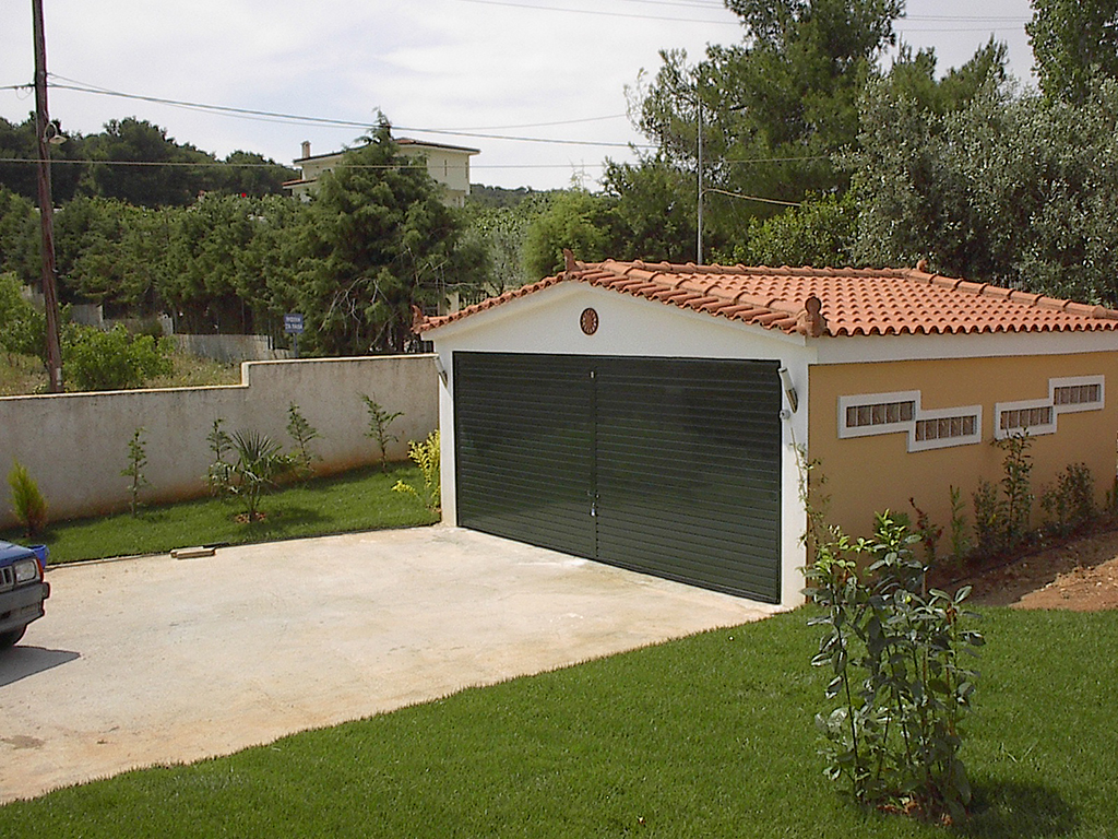Atlas 150 roof garage doors are manufactured in the desired dimensions for openings up to 4 meters width and height of up to 2.5m and in any RAL color of your choice. Coverage is made of aluminum, galvanized or plastic sheet metal, wood or whatever the customer wants. . The door drive process is via a toggle mechanism (bracket) and not with drivers, thus eliminating friction and noise. The fillets are placed at the end of the door system to fill the gaps between the door and the goal, giving the perfect aesthetic result.